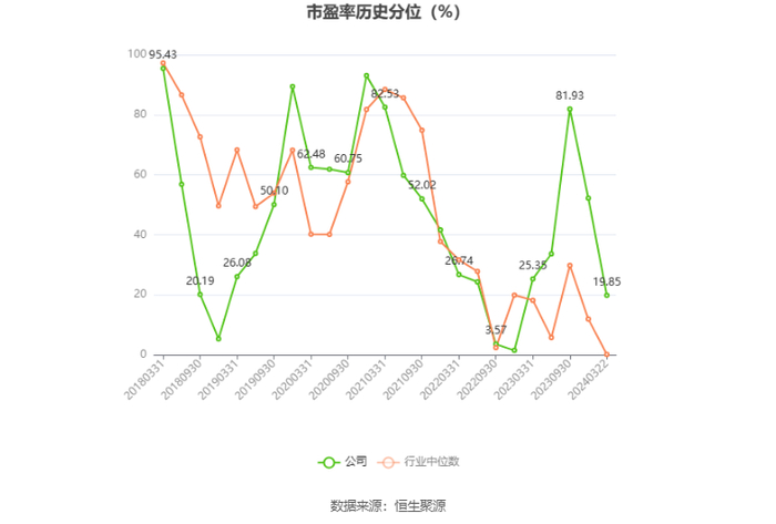 市盈率为负时,不显示当期分位数,会导致折线图中断。