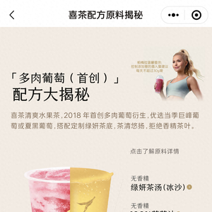 (文/解红娟 编辑/马媛媛)继霸王茶姬上线“营养选择”标识后,喜茶在茶饮健康化也有了新动作。