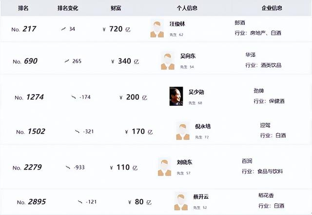 所以,食悟带你重点关注一下上榜2023年胡润百富榜的9位中国酒业富豪: