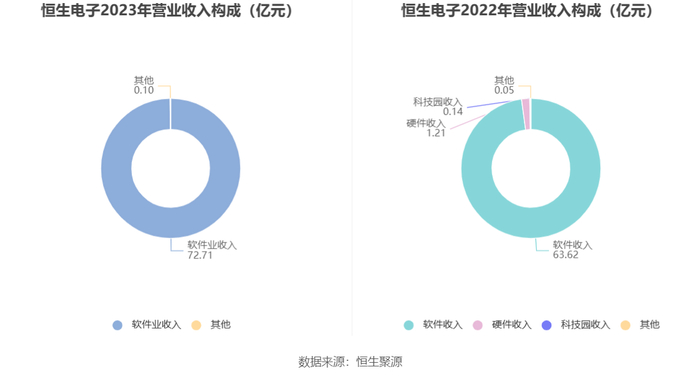 分产品来看,2023年公司主营业务中,软件业收入收入72.71亿元,占营业收入的99.86%;科技园收入收入0.05亿元,同比下降67.37%,占营业收入的0.06%。