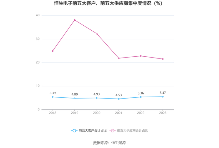 报告期内,公司前五大客户合计销售金额3.98亿元,占总销售金额比例为5.47%,公司前五名供应商合计采购金额1.39亿元,占年度采购总额比例为21.50%。