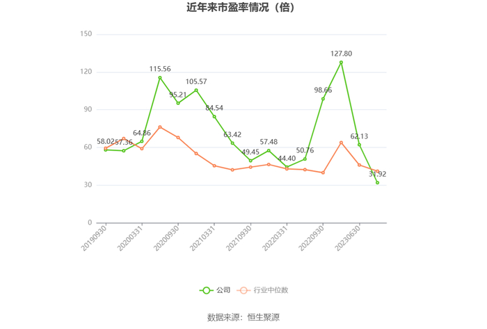 以3月25日收盘价计算,恒生电子目前市盈率(TTM)约为31.92倍,市净率(LF)约为5.66倍,市销率(TTM)约为6.24倍。