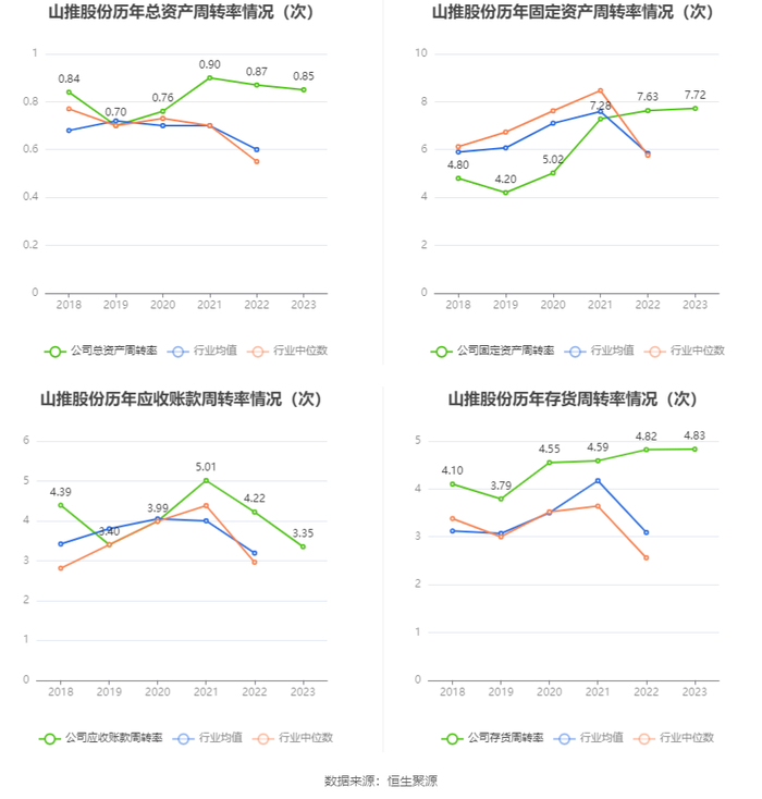 截至2023年末,山推股份三年营业总收入复合年增长率为13.01%,三年净利润复合年增长率为125.86%。