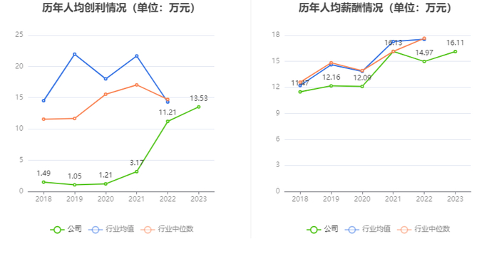 截至2023年末,公司员工总数为5657人,人均创收186.33万元,人均创利13.53万元,人均薪酬16.11万元,较上年同期分别增长5.04%、20.71%、7.67%。