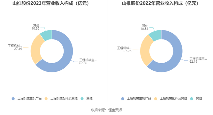 分产品来看,2023年公司主营业务中,工程机械主机产品收入67.66亿元,同比增长8.78%,占营业收入的64.18%;工程机械配件及其他收入27.49亿元,同比增长0.85%,占营业收入的26.08%。