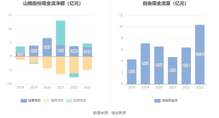 进一步统计发现,2023年公司自由现金流为10.36亿元,相比上年同期增长62.31%。