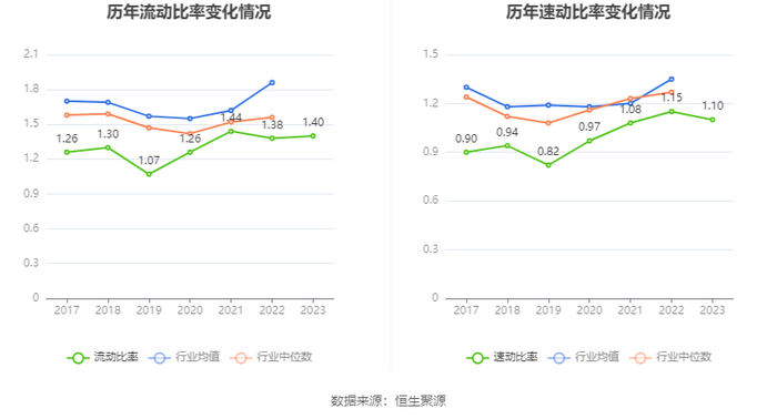 2023年,公司流动比率为1.40,速动比率为1.10。