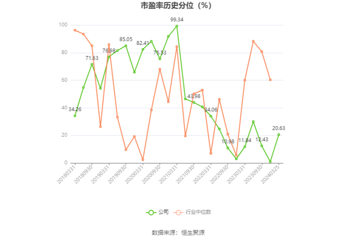 市盈率为负时,不显示当期分位数,会导致折线图中断。