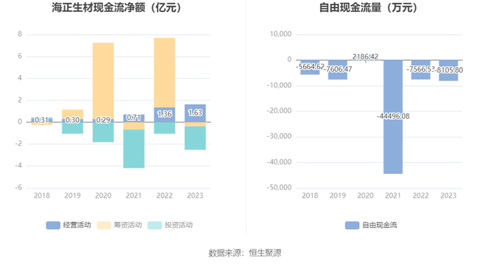 进一步统计发现,2023年公司自由现金流为-8105.80万元,上年同期为-7566.53万元。