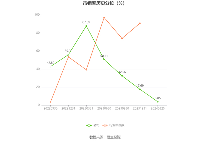 以3月25日收盘价计算,海正生材目前市盈率(TTM)约为43.93倍,市净率(LF)约为1.29倍,市销率(TTM)约为2.54倍。