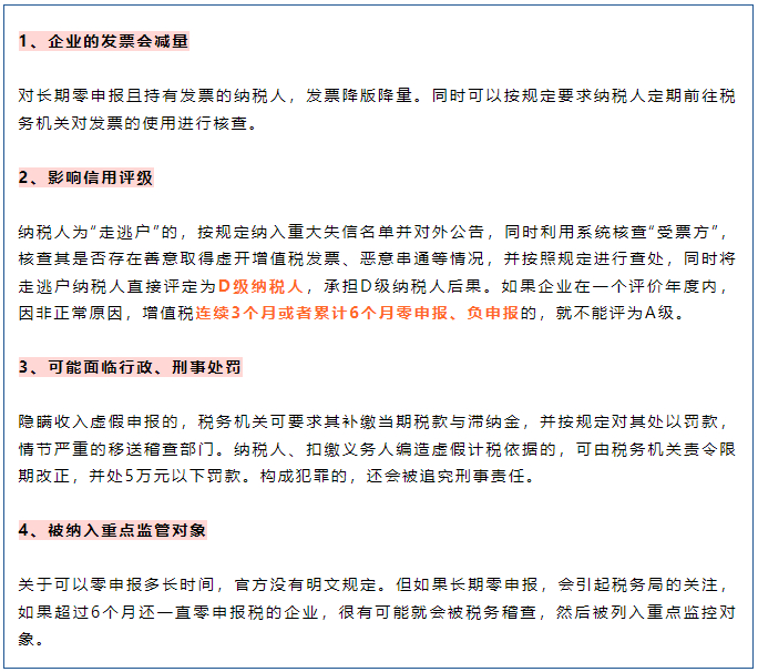 要知道长期零申报属于异常申报,不但要被列入重点监控对象,还存在税收风险。