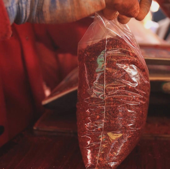 除了灵魂辣椒油,麻辣烫的汤底同样很重要,由骨汤和多种调料一起熬制而成,调料多样,配比神秘。麻辣烫经营者王元琴说,“做麻辣烫需要十几种材料,花椒、八角、白蔻、小茴香,还有干姜片、草果、良姜等。”除了汤底调料,最关键的就是辣椒了。海椒和甘谷辣椒按照适量的比例融合,造就了辣椒又香又辣的特点。