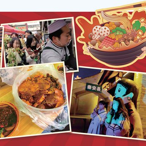 天水麻辣烫爆火出圈。右下:大地湾文化IP形象大使“小祖宗”亮相天水麻辣烫吃货节。中青报·中青网记者 王豪/摄