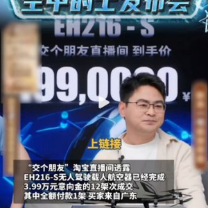 3月20日,一台标价为239万元的“空中的士”在淘宝直播间开售,这是全球*获得适航认证的国产自研“飞行汽车”。链接挂上没多久,一位来自广东的神秘买家就率先全款下定,另外还有12人支付了3.99万元的意向金。