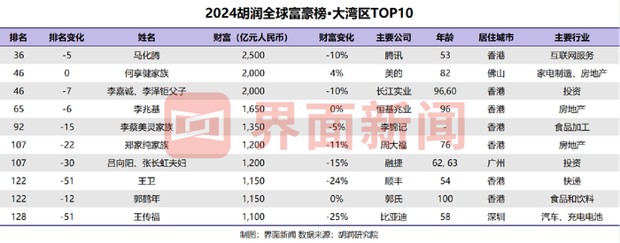 2024胡润全球富豪榜:大湾区220人上榜,新增财富来自AI行业