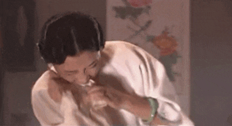 《大红灯笼高高挂》里,巩俐演的四姨太挑破她这个三姨太偷汉时,她也是这样,吓破胆子,照旧服不了软,大喊:“我看你们敢把我怎么样!”