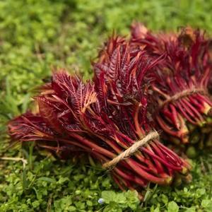 香椿(Toona sinensis),《中国烹饪百科全书》中将椿芽分为青芽与红芽,青芽青绿色,质好而香味浓,红芽红褐色,质粗而香味差。我印象里,小时候市场上的香椿,都是青芽,后来才出现红芽香椿。