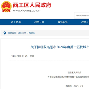 关于拟征收洛阳市2024年度第十五批城市建设用地的启动通告