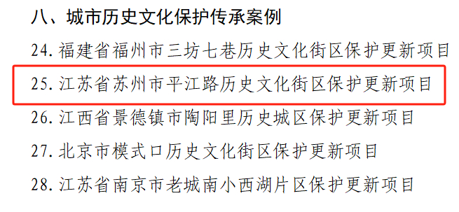 苏州市平江路历史文化街区保护更新项目入选城市历史文化保护传承案例。