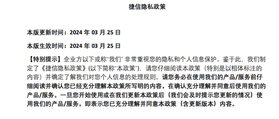 此外,记者注意到,捷信消金于3月25日更新了捷信隐私政策。