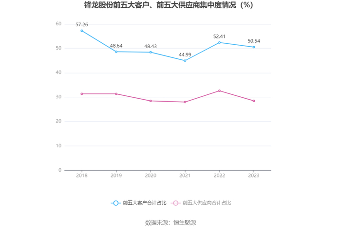 报告期内,公司前五大客户合计销售金额2.19亿元,占总销售金额比例为50.54%,公司前五名供应商合计采购金额0.67亿元,占年度采购总额比例为28.50%。