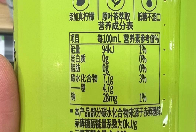 而且,对于部分饮料来说,似乎味道越甜,含糖量越是“难以说出的秘密”。反之,一些“低糖”“无糖”饮料,大多明确标出了含糖量。例如,统一绿茶推出的“低糖”版饮料,就在营养成分表中标明,每100毫升含糖4克。喜茶推出的低糖浓果茶、元气森林推出的低糖丝绒草莓乳茶、奈雪的茶推出的低糖柠檬茶,每100毫升的含糖量也均在5克以下。