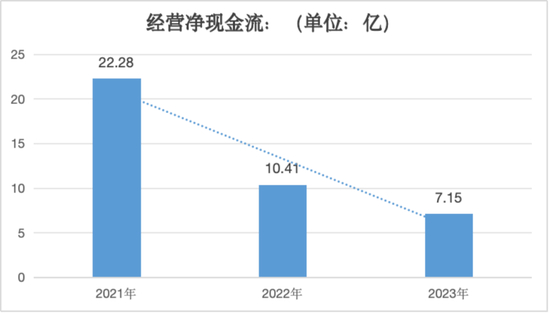 由此可见,老酒战略效果明显,但在此战略背后,公司近三年经营净现金流却在不断下降。