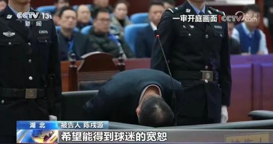 无期徒刑,罪有应得。庭审中,陈戌源表示认罪悔罪,在最后陈述环节,90度鞠躬近10秒向全国球迷道歉:“我无脸面面对广大球迷,在此我向全国球迷公开谢罪,真诚地向广大球迷说声对不起,希望能得到球迷的宽恕。”