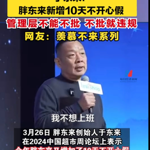此前胖东来也因号称管理层有190天休假在去年12月引起热议。