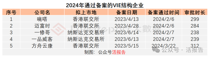 截至目前,据LiveReport大数据统计,共有8家VIE架构企业通过证监会备案,其中4家为赴港上市。今年近三个月,通过了5家,速度加快了不少。