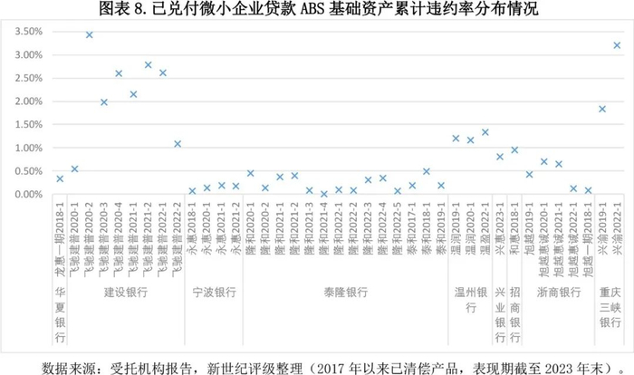 2.已兑付产品基础资产累计违约率整体处于低位,且多数入池资产表现优于银行自身,资产信用质量整体保持稳定