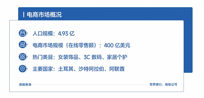 虽然相比几年前,沙特、土耳其和阿联酋的电商市场已有显著增长,但与北美和欧洲地区相比,这个市场整体的“蛋糕”还太小;与东南亚相比,商家进入市场的隐形门槛更高。