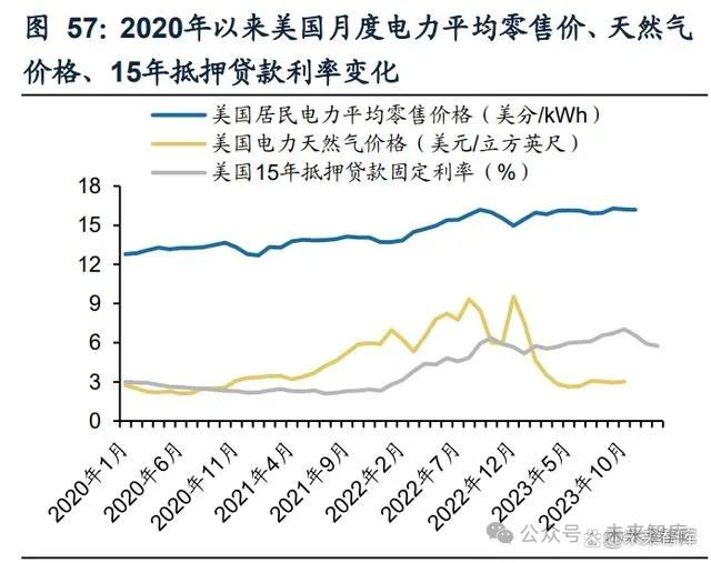 经济性因素:能源价格回落弱化电价上涨预期,贷款利率提升提高融资成本, 2023年表后储能经济性边际下滑导致部分需求放缓,2024年经济性改善后需求有望 逐步释放。考虑到表后储能具备投资品属性,收入与成本变化通过影响配储经济性 进而影响用户采购意愿。收入端:电力市场化程度较高的加州、德州等地已开始实 行峰谷分时电价政策,但电价调整周期较长,天然气价格对未来一段时间居民电价 具有指导作用。2023年能源危机缓和后天然气价格出现大幅下滑,或在一定程度上 制约电价上涨预期,进而弱化户储盈利性。成本端:碳酸锂价格虽在2023年上半年 出现大幅下滑,但美国高通胀率导致安装成本与贷款成本大幅提升。根据Energy Sage统计,2023年H1美国户储系统平均安装成本为1352美元/kWh,环比进一步提 升,高成本与低收入预期倒挂导致户储装机需求放缓。我们认为,2024年随着美联 储加息周期结束、碳酸锂降价逐步向系统端传导、IRA法案将储能补贴标准降低至 3kWh且不再与光伏发电完全绑定叠加加州SGIP额外补贴,表后储能需求有望逐步 释放。
