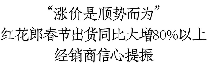 “我们春节出货量也有大幅增长,红花郎涨幅50%左右,这次涨价准备工作很充分,2023年对品牌营销和宴席的投入也是真金白银,起到了很关键的效果,所以去年开始就在持续增长,到这次顺势提价,应该会很顺利。”四川经销商周起(化名)也向酒业家表达了其对红花郎的市场信心。