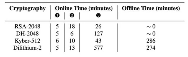 至于其有效性,研究人员的测试应用程序能够在不到一个小时的时间内提取2048位的RSA密钥,提取2048位的Diffie-Hellman密钥则只需两个多小时。除去离线处理时间,获取Dilithium-2密钥需要十个小时。
