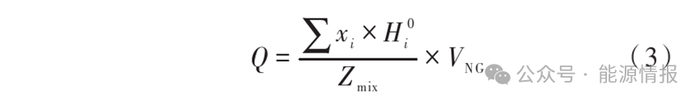 式中:H0i为组分i的体积热值,MJ/m3;Zmix为LNG输送在计量参比条件下的压缩因子;VNG为天然气的体积,m3。