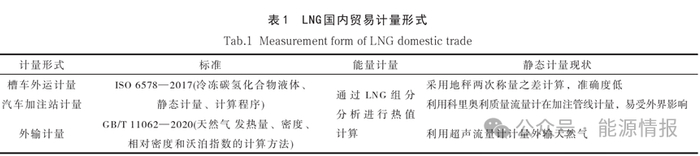 以上三种形式的LNG国内贸易计量对比见表1所示。