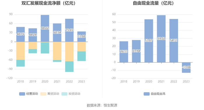进一步统计发现,2023年公司自由现金流为-13.08亿元,上年同期为54.30亿元。