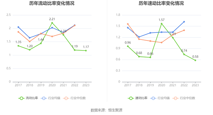 2023年,公司流动比率为1.17,速动比率为0.58。