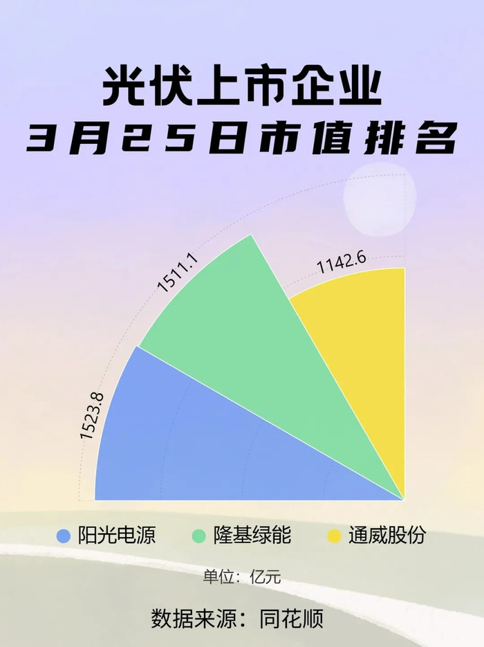 当前,A股市值过千亿元的光伏企业有三家,分别为:隆基绿能、阳光电源、通威股份。3月以来,阳光电源市值飙升223.2亿元,隆基绿能与通威股份市值则分别下跌125.8亿元和63亿元。