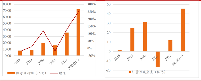 阳光电源的储能和逆变器业绩高速提升,归母净利润飞速上涨,经营性现金流达历史最高。