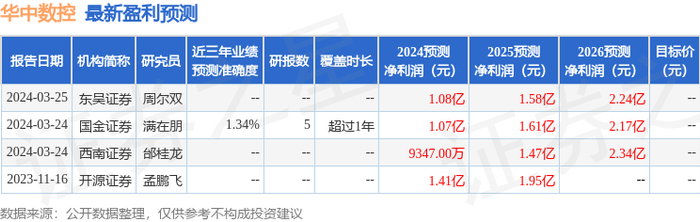 最新盈利预测明细如下: