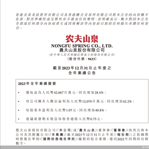 詹军豪进一步表示,农夫山泉的这份财报体现了一些新变化,“从收益的增长率来看,农夫山泉在2023年取得了非常不错的成绩,总收益较2022年增长了28.4%,这显示出公司的整体运营状况良好,市场拓展和产品销售都取得了显著的进展;同时,反映出消费者对饮料产品的需求在不断增加,市场潜力巨大,农夫山泉在饮料产品线的研发和市场推广上投入了大量的资源和精力,取得了成效”。