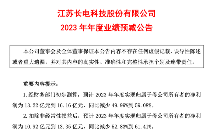 不过,长电科技2023年全年业绩同比下降,比2023年上半年业绩同比下降幅度有所减缓,2023年下半年部分客户需求有所回升,2023年第四季度订单总额恢复到2022年同期水平。