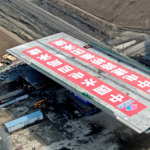 乌鲁木齐绕城高速(西线)工程兰新铁路特大桥主桥全幅44米,全长130米,总重2.6万吨,设计速度100公里/小时,是目前新疆在建项目中桥面最宽、重量最大的转体桥梁。