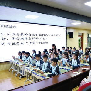 南宁市罗贤路小学“二核三层五步”教学模式成果展示活动上,教师进行课例展示。(学校供图)本报讯 3月22日,南宁市罗贤路小学开展“二核三层五步”教学模式成果展示活动,以数字赋能课堂,聚焦深度学习,提高教学效率,实现优质高效课堂。