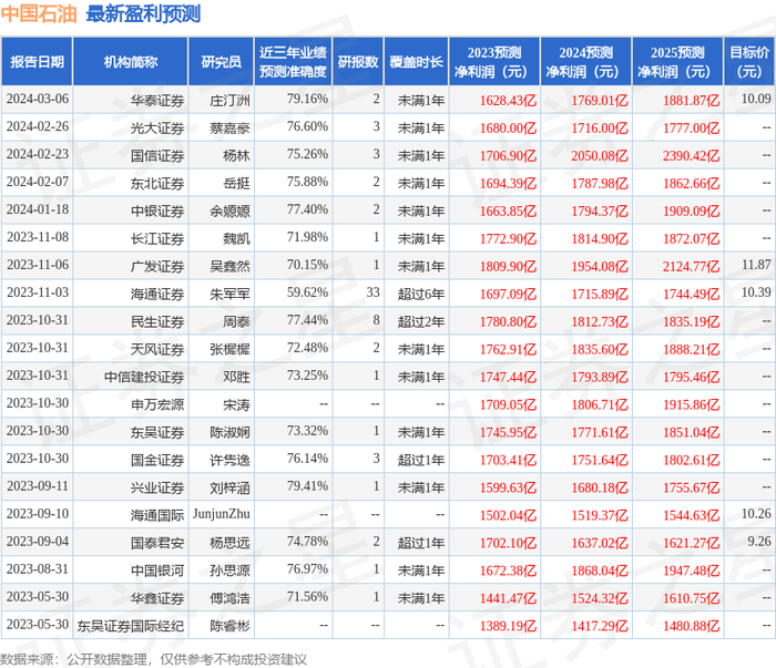 分析师工具显示:证券研究员普遍预期2024年业绩在1731.93亿元,每股收益均值在0.94元。
