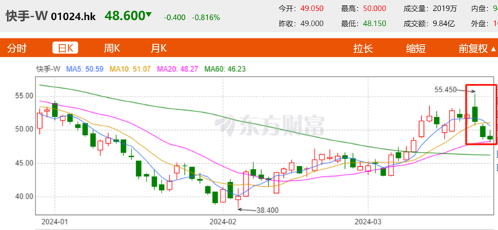 2024年3月20日,快手发布2023年财报,全年营收首度超过千亿元大关,也首次扭亏为盈,经调整后净利润突破百亿元。让人意外的是如此亮眼的业绩表现,在财报发布后快手股价却三连跌,截至3月25日收盘,快手股价为48.6港元,较高峰值跌幅近九成,市值蒸发1.6万亿港元。