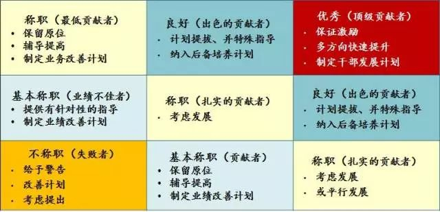 这是现在大家普遍接受的“绩效—行为”二维评价模型,也称九宫格模型。