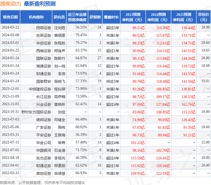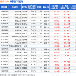 分析师工具显示:证券研究员普遍预期2024年业绩在114.28亿元,每股收益均值在1.31元。